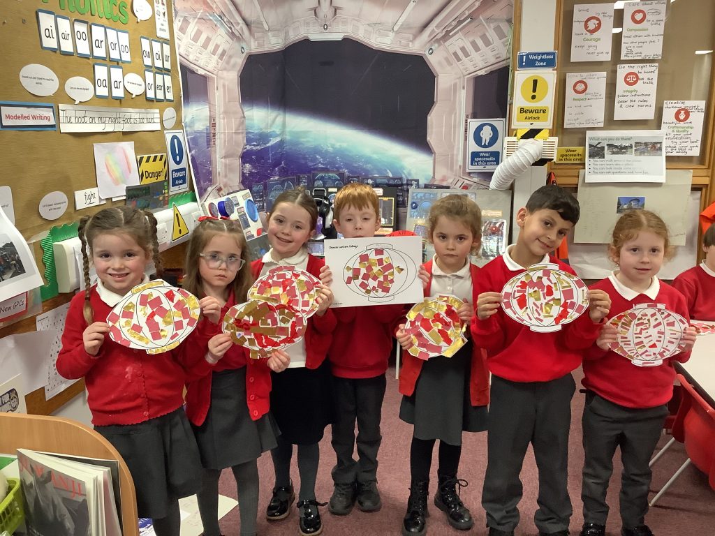 Nursery have been inspired to think of small changes and little ways in which we can help, through our key text “Please Help Planet Earth” a Ladybird eco book. We have found that we can turn off taps, save electricity by turning off lights when we’re out of a room, we can recycle rubbish and place all rubbish in bins, we can plant flowers for the bees and butterflies, we can grow our own vegetables to save the rainforests from being turned into farms, we can help to feed the birds and most importantly we can walk to more places or take a bus or a train to help keep pollution fumes lower. Beautiful work Nursery!