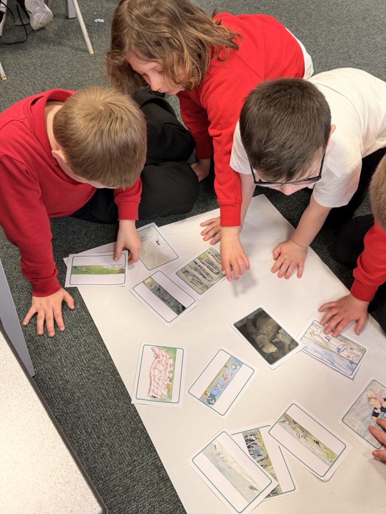 To help us, we are using a story we already know really well — We’re Going on a Bear Hunt by Michael Rosen. We were so impressed with how brilliantly everyone remembered the story from Reception. The actions, the repeated phrases, the order of events — amazing!