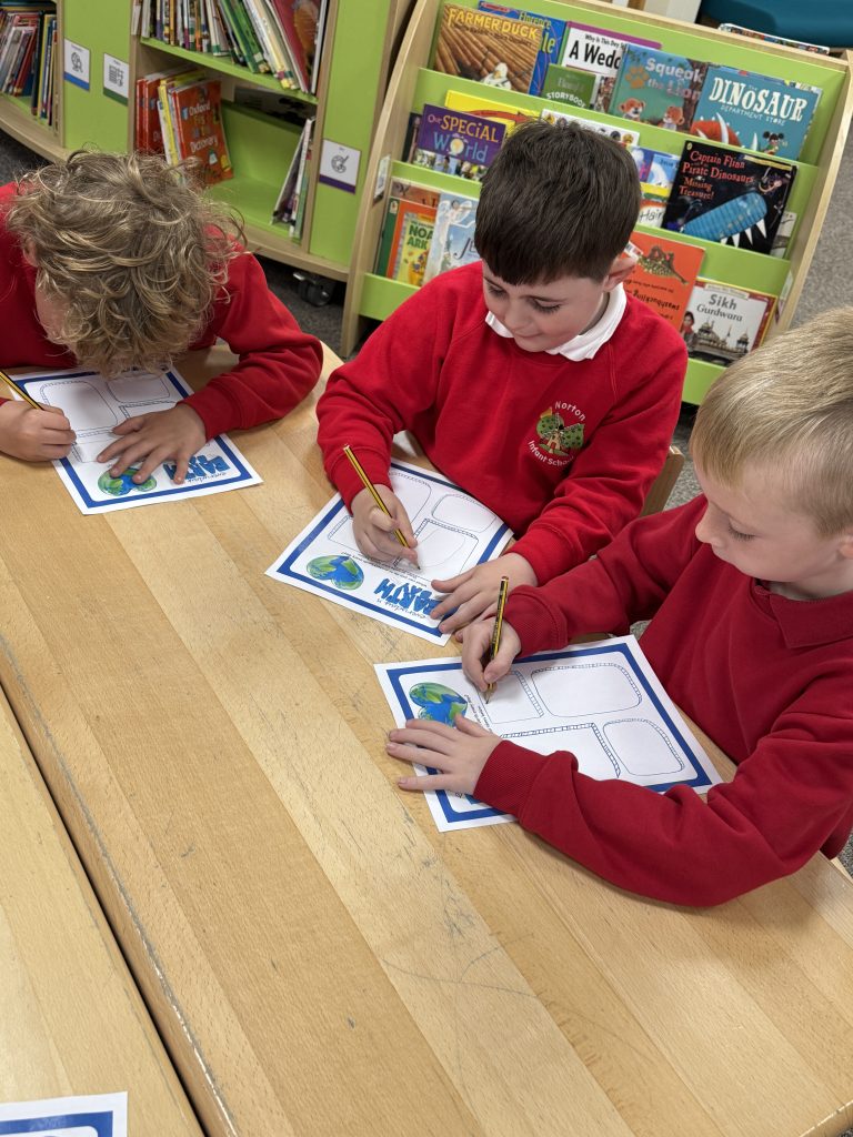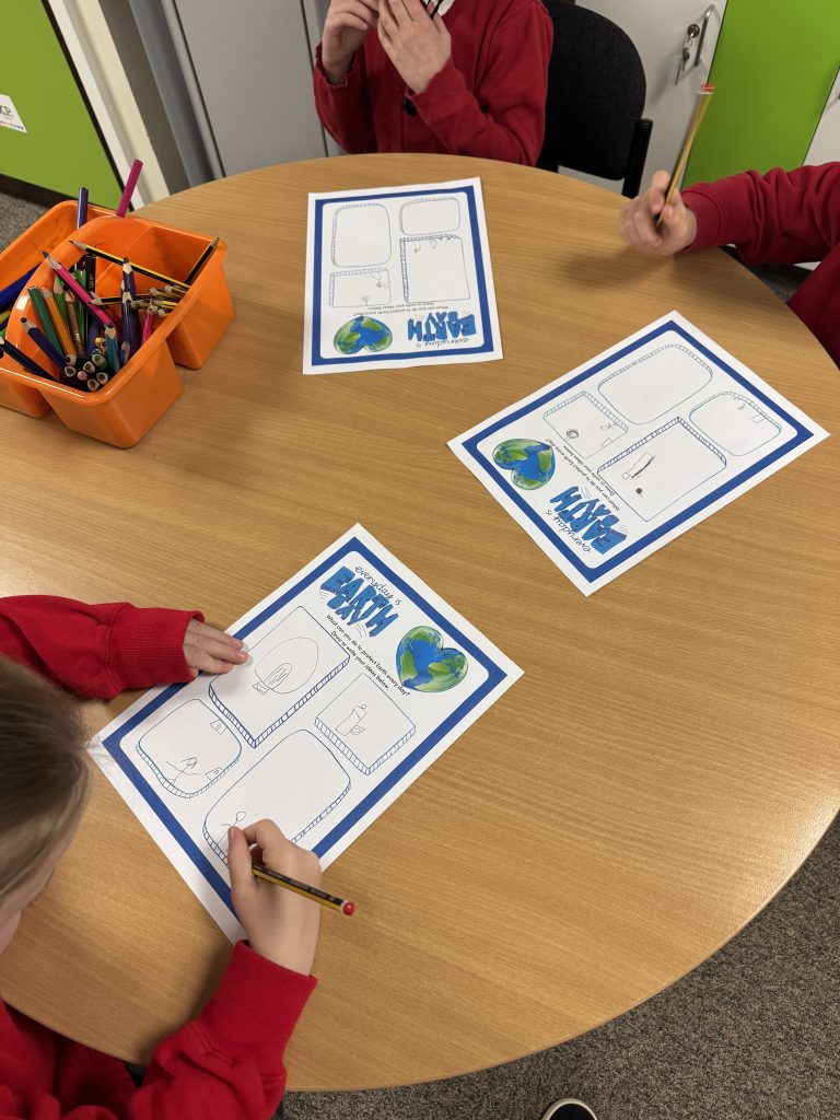 We began by reminding ourselves of our exciting final product — a reusable water bottle featuring our very own artwork. The children were buzzing with purpose, knowing their designs will help promote looking after our planet 🌍