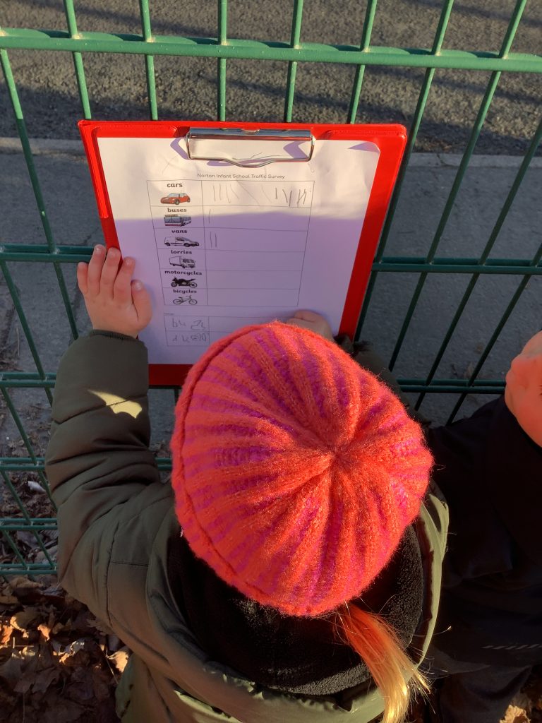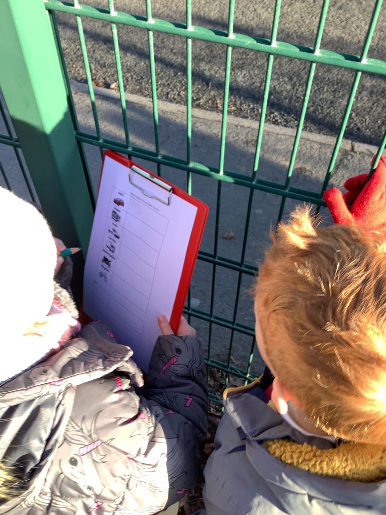 Our very first mission was to become explorers right on our doorstep. The children headed outside to carry out a survey, discovering what we could find passing by our school. Working collaboratively, they carefully observed and recorded the different vehicles they saw along the way.