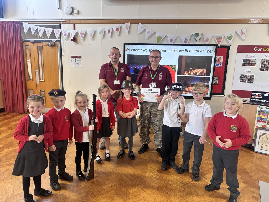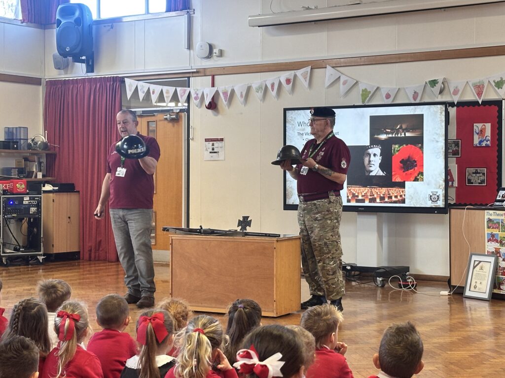 We learned why Remembrance Day is so important, and Keith and Dave shared stories about local heroes from Doncaster who were awarded the Victoria Cross — the highest military honour for bravery. We even got to see a real Victoria Cross medal, which was a very special moment for everyone!
