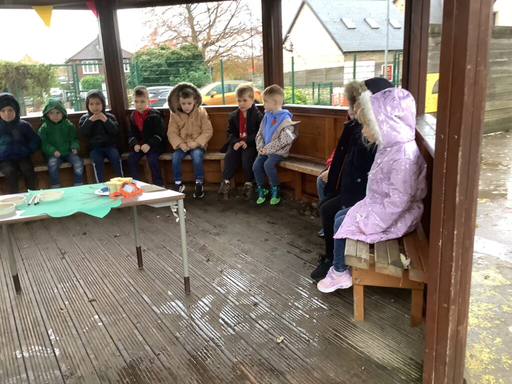 To finish off our time doing XP Outdoors this half term, Crew Gate and Crew Tinker gathered around the campfire and enjoyed a delicious hot chocolate. While drinking our hot chocolates we worked together to tell our very own story… All about a treasure hunting piarate in the desert.