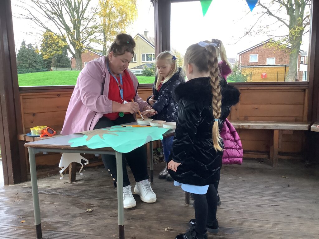 Once back in the classroom the children shared thoughts of their experience and completed a class sense map, noting down ideas of what they could see, hear, smell and feel. There were some beautiful thoughts and sentences that were communicated from the adventure which really helped the children to understand what a forest is. We have used this knowledge and experience to inspire large scale pieces of artwork, which will be part of our final product in terms of creating a story setting. The children also watched a short video of a virtual tour through Sherwood Forest, in Nottingham, where they tried to spot Robin Hood! They then compared that to the experience of our school woods in Norton and talked about what was the same and what was different? They soon realised that forests were much bigger with larger trees, thicker bushes and more undergrowth. They also learnt that not only animals but people could also possibly live in a forest like in olden times. You have been great geographers Nursery! Here’s a sneak peak of our artwork…