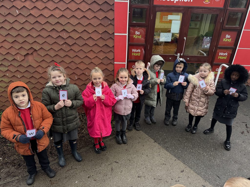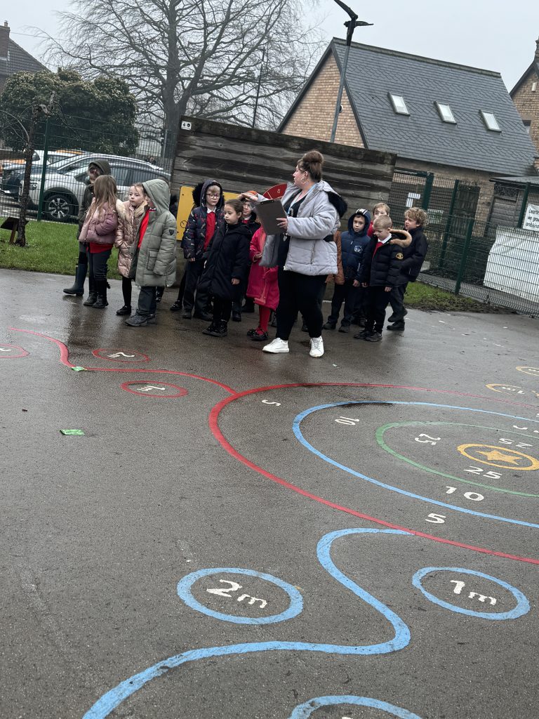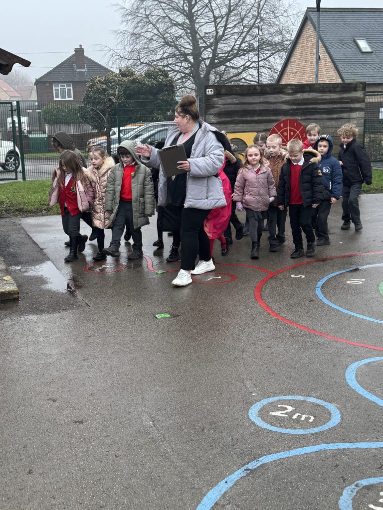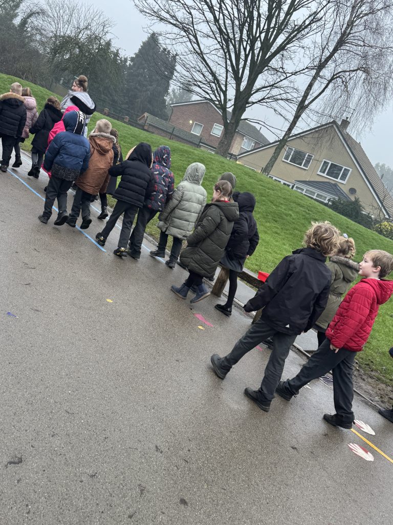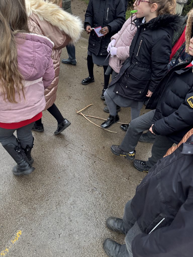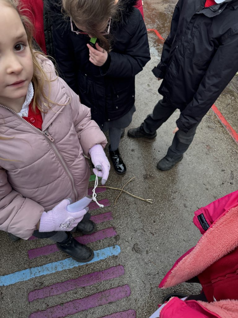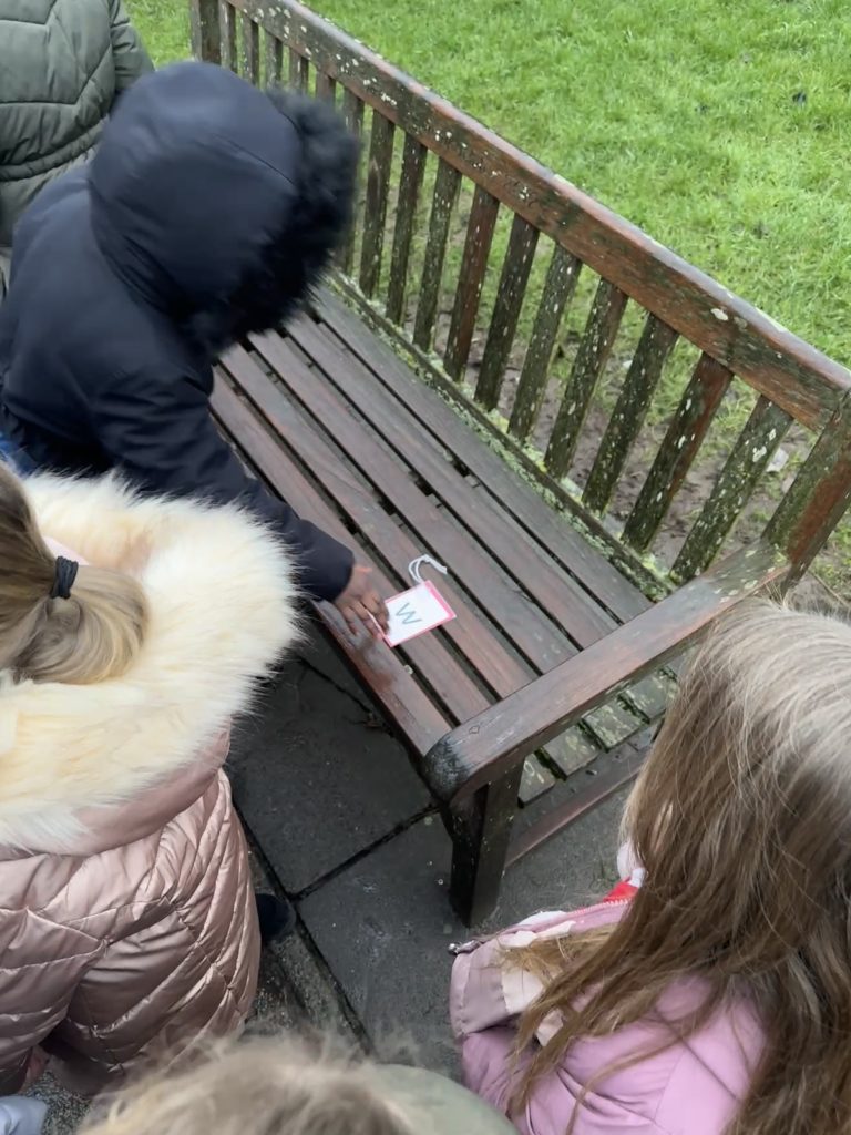 This week Crew Hamilton got out and about in the school grounds. We followed arrows on the floor, stoped at crosses and counted our steps to find a range of letters that we needed to unscramble to crack the secret code.