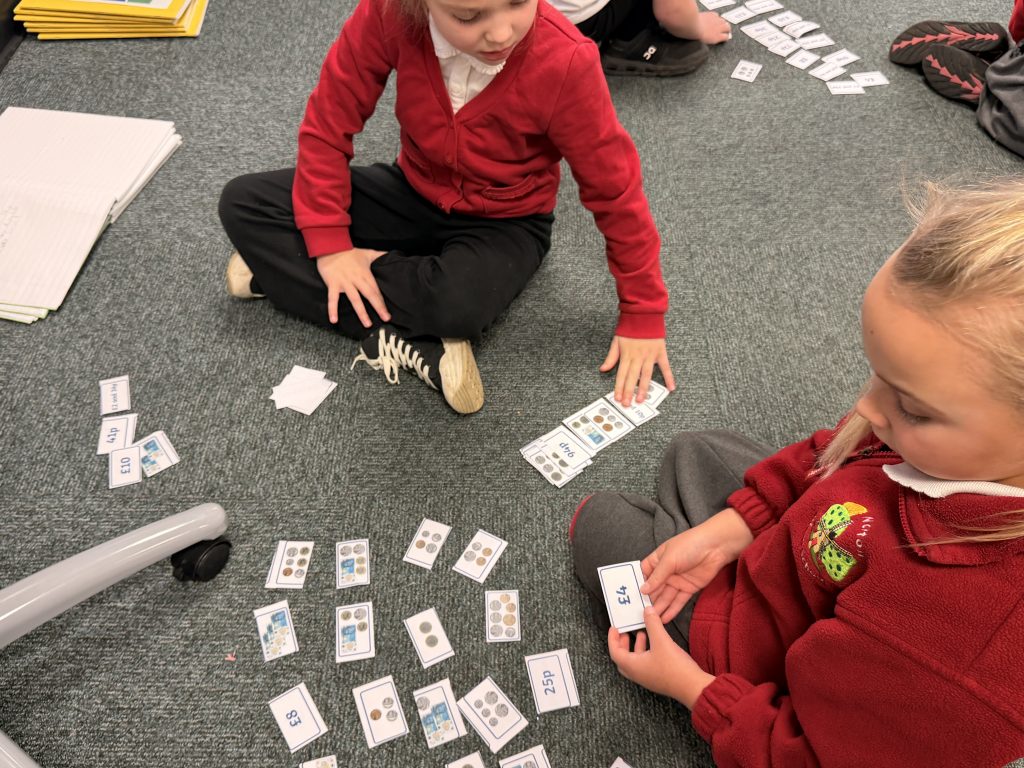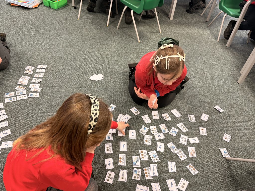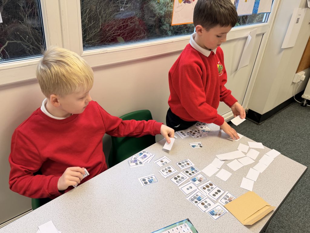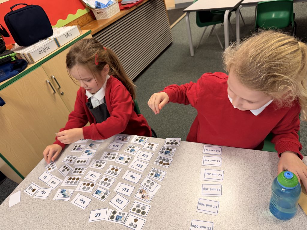 Today in Maths, we continued to practise making different amounts using coins and notes. The children worked together in pairs, exploring different ways to make the same total and explaining their thinking to each other.