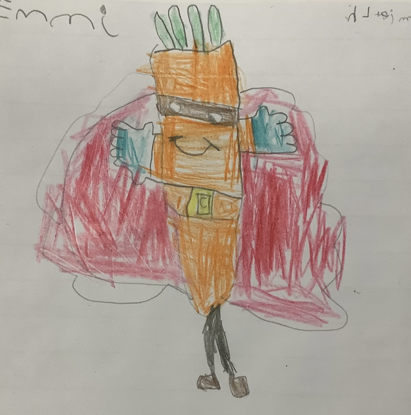 Each child created a unique veggie-themed superhero and after completing their masterpieces, the children took part in a gallery walk, proudly showcasing their artwork and admiring their classmates’ creations.
